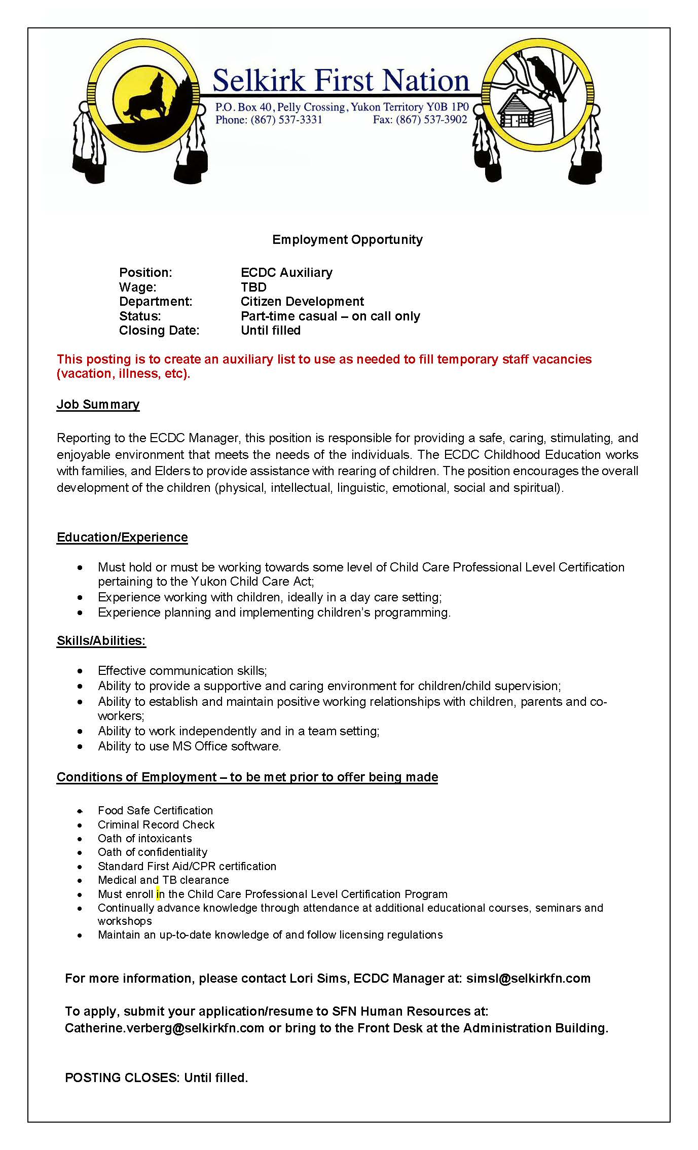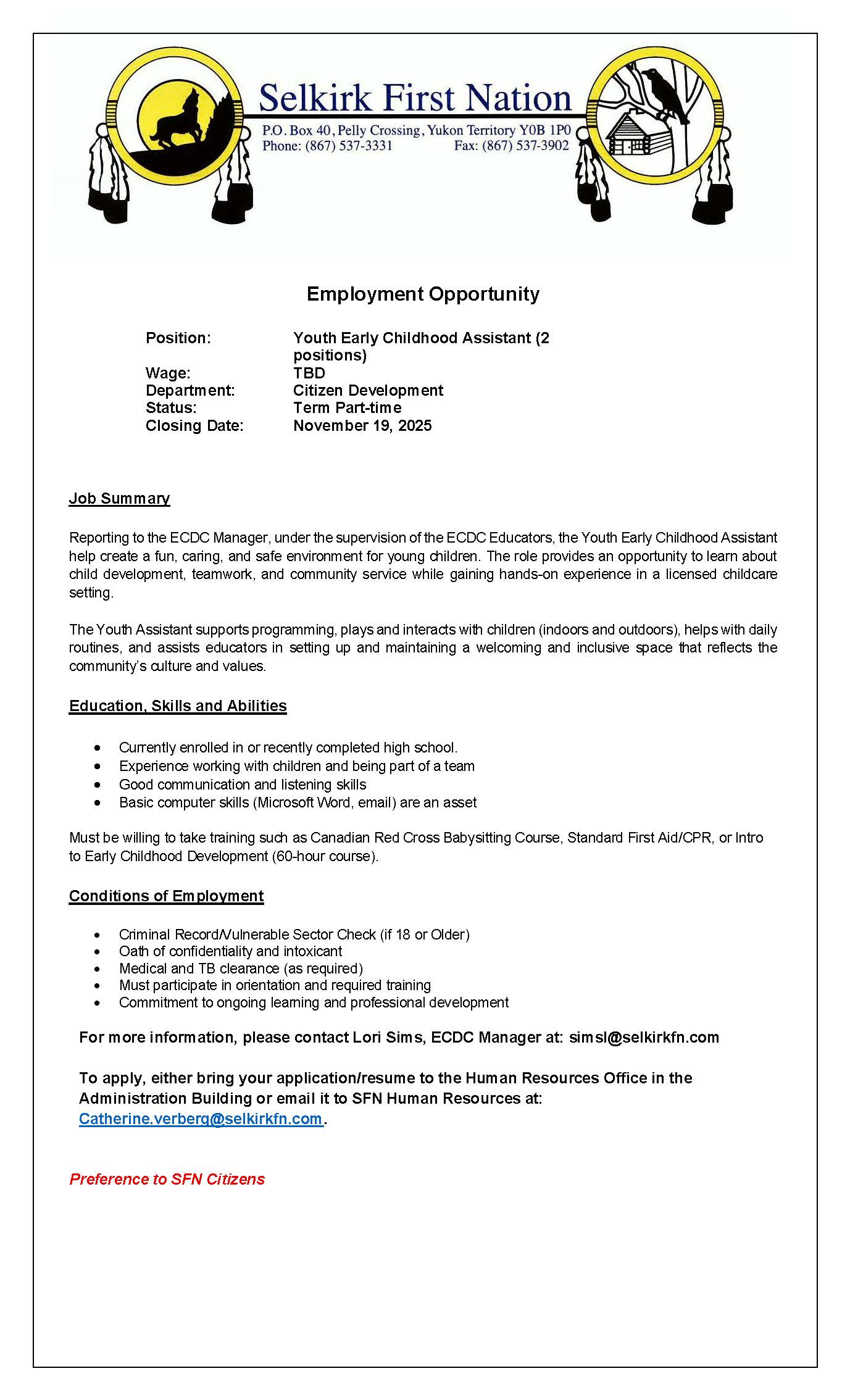 ECDC Youth Early Childhood Assistant (2 positions) – Closing Date: Nov 19th