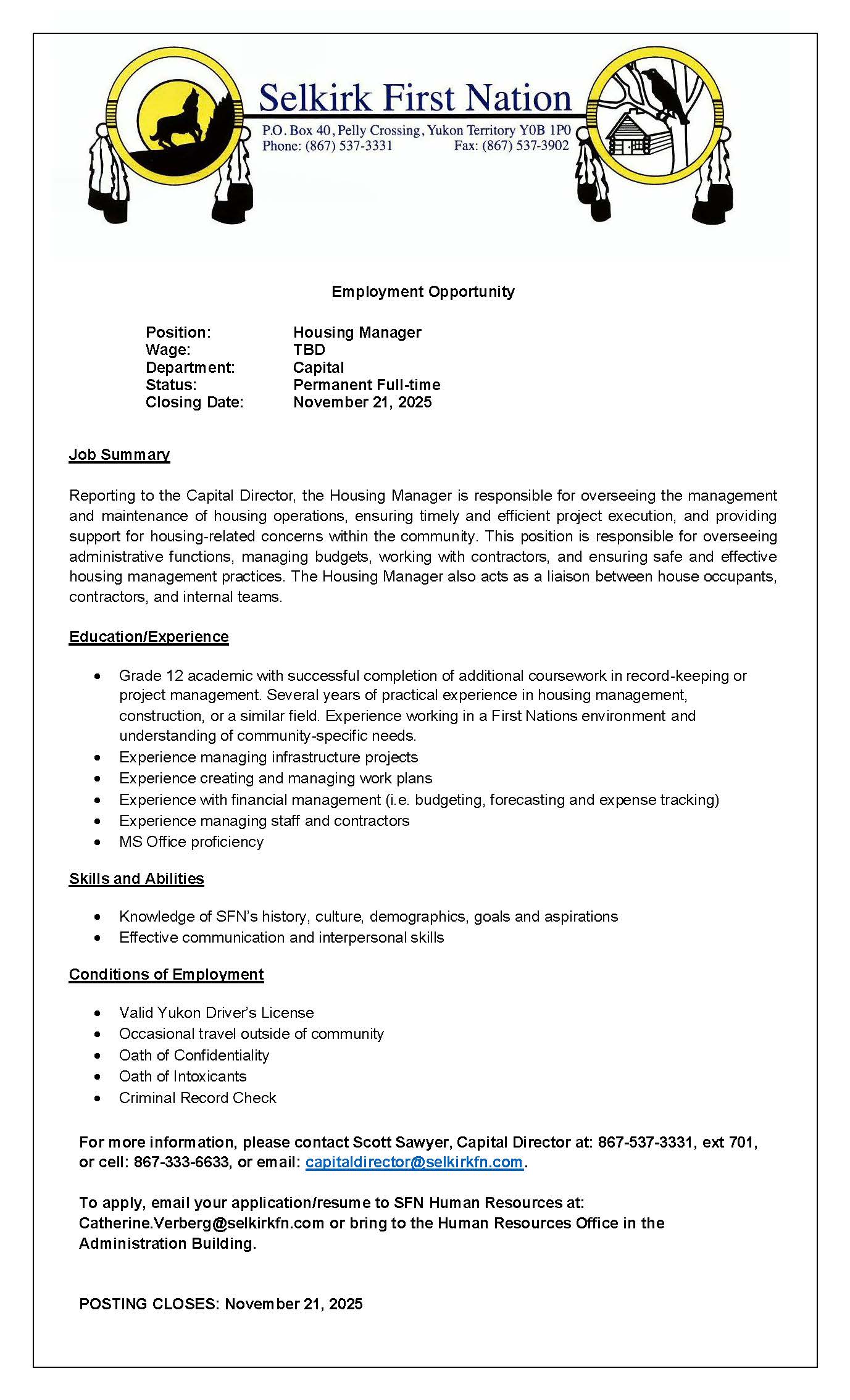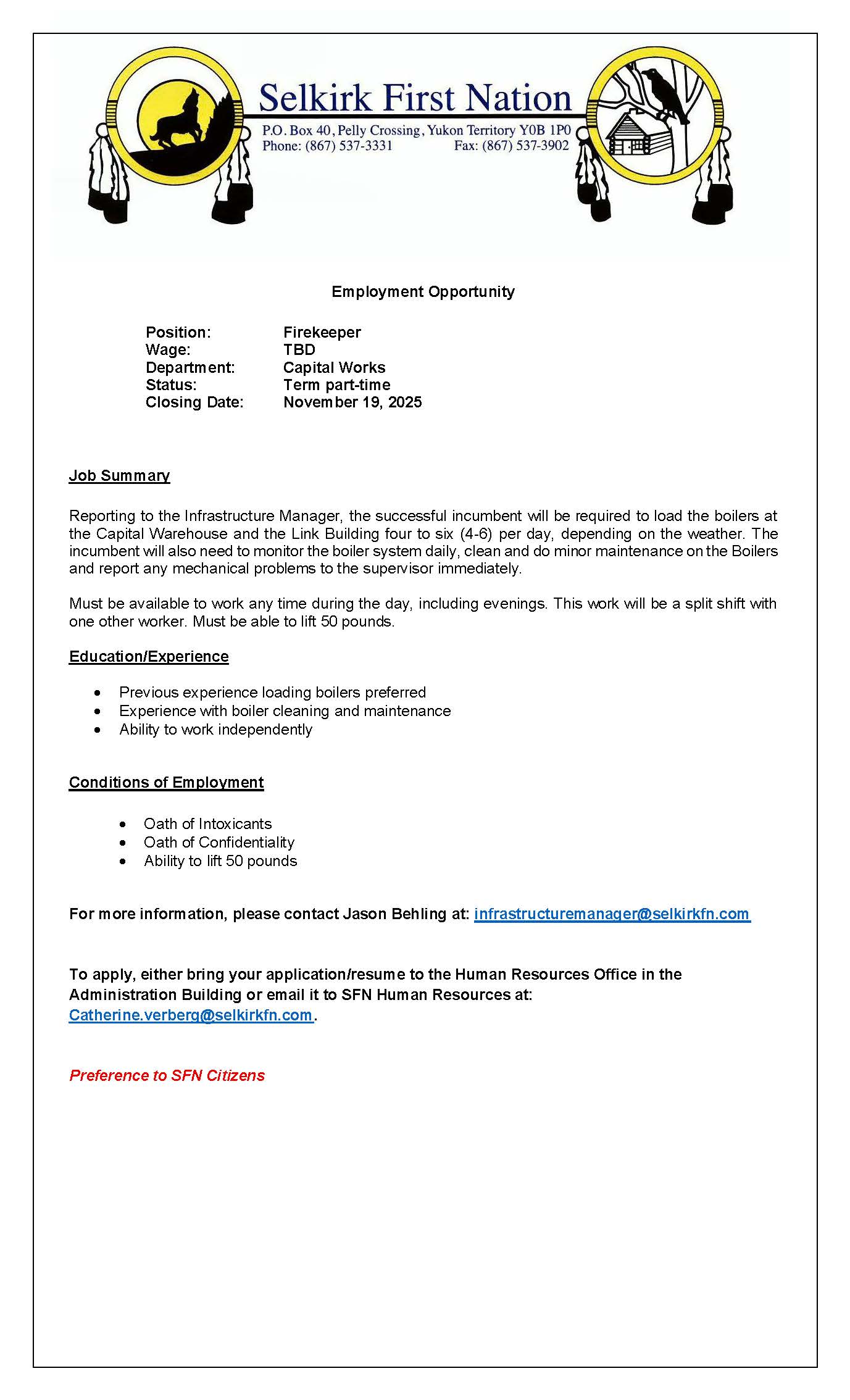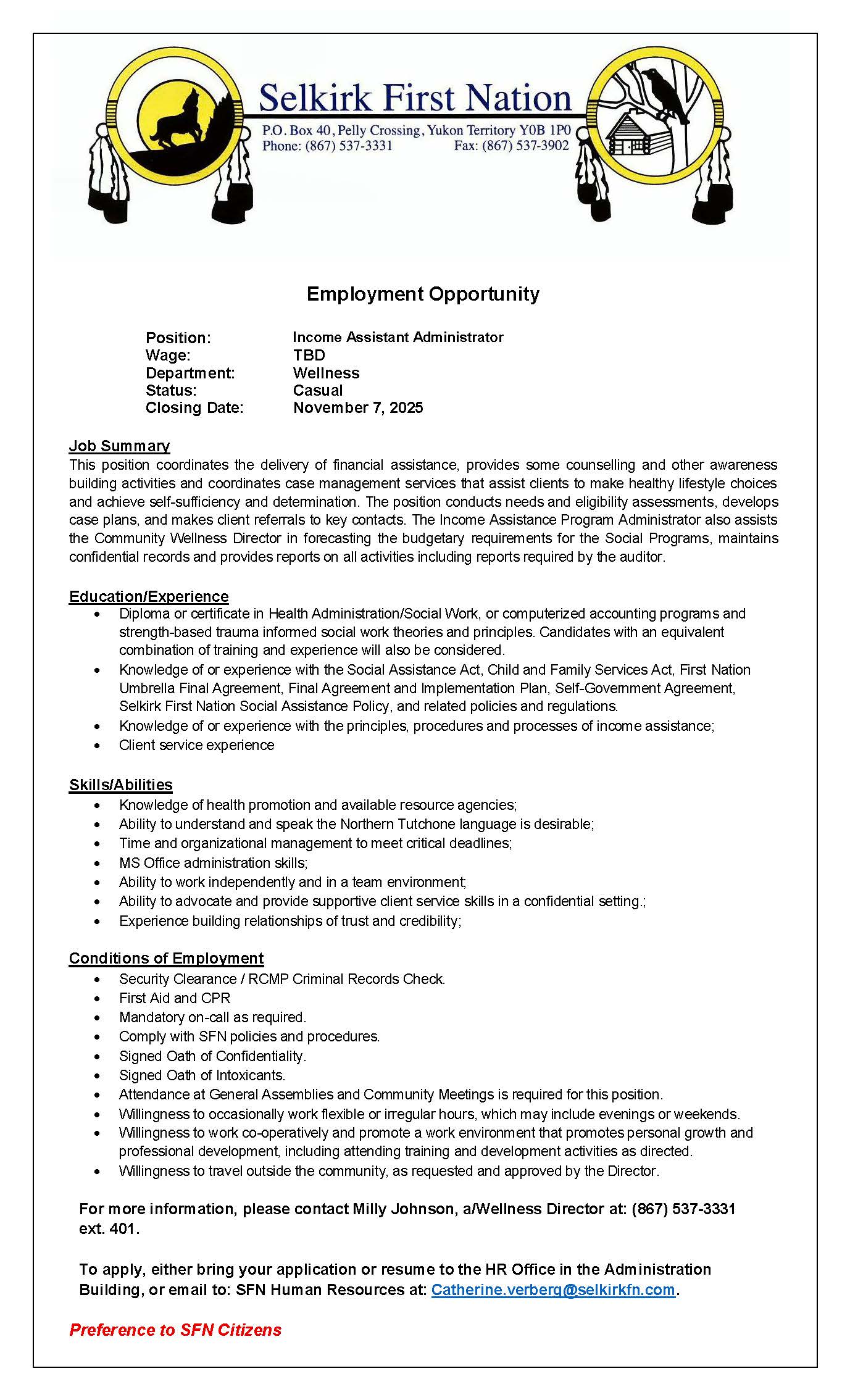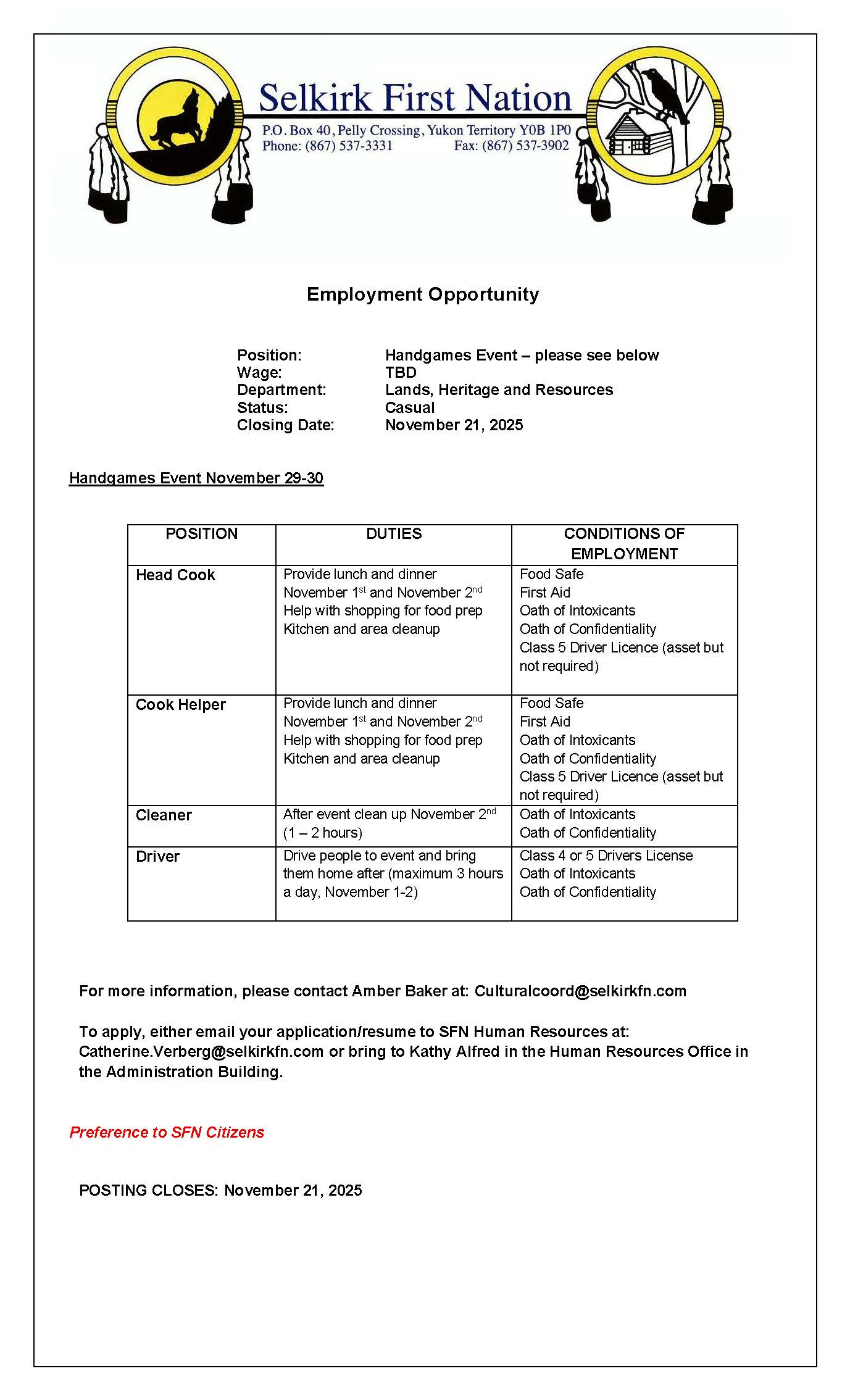 Hand Games Event – Various Positions (Head cook, cook helper, cleaner, driver) Closing Date: November 21st