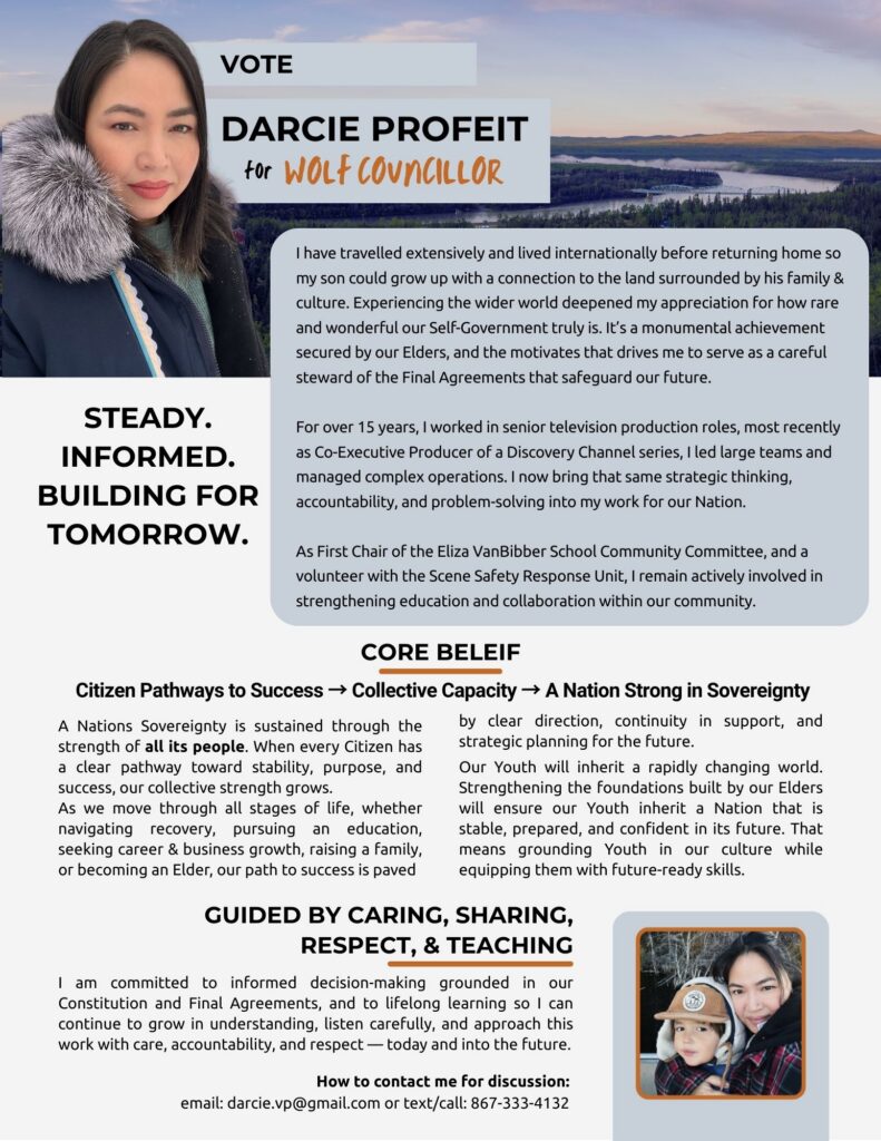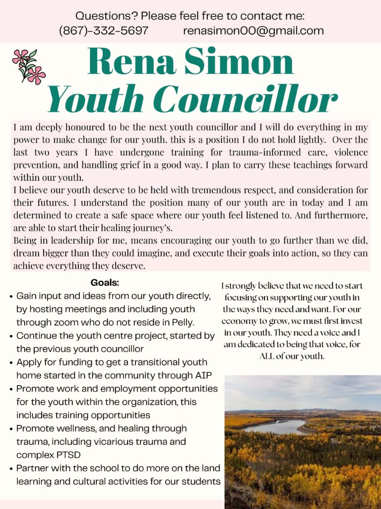 On February 10th, 2026, at the Close of Nominations, the Chief Returning Officer advised the Election Committee that pursuant to section 44 of the Selkirk First Nation Election Act, that only one candidate for Chief Jeremy Harper and one candidate for Youth Councillor Rena Simon in this General Election submitted and upheld the required nomination forms. The Election Committee declared that: